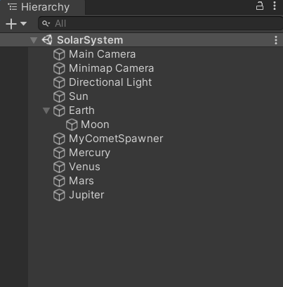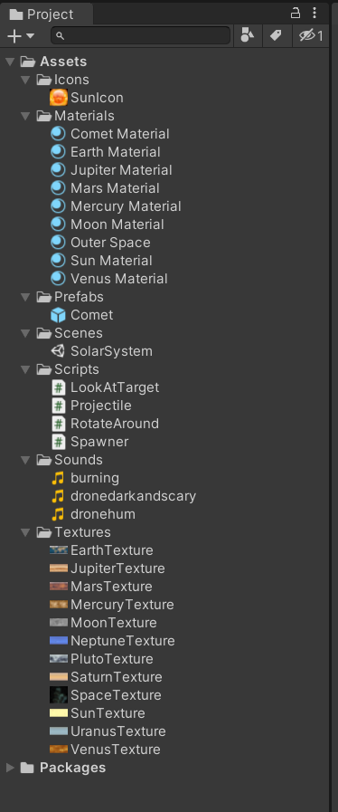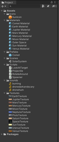 This is my Solar System. I tried to get the proportions real, and I added all the planets from the Sun to Jupiter. I also tried to adjust the sound pitches of the planets based on their size.